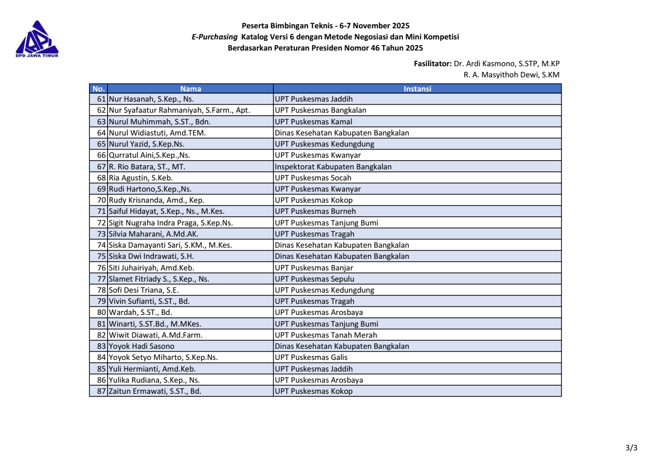 | 64 | Nurul Widiastuti, Amd.TEM. | Dinas Kesehatan Kabupaten Bangkalan |